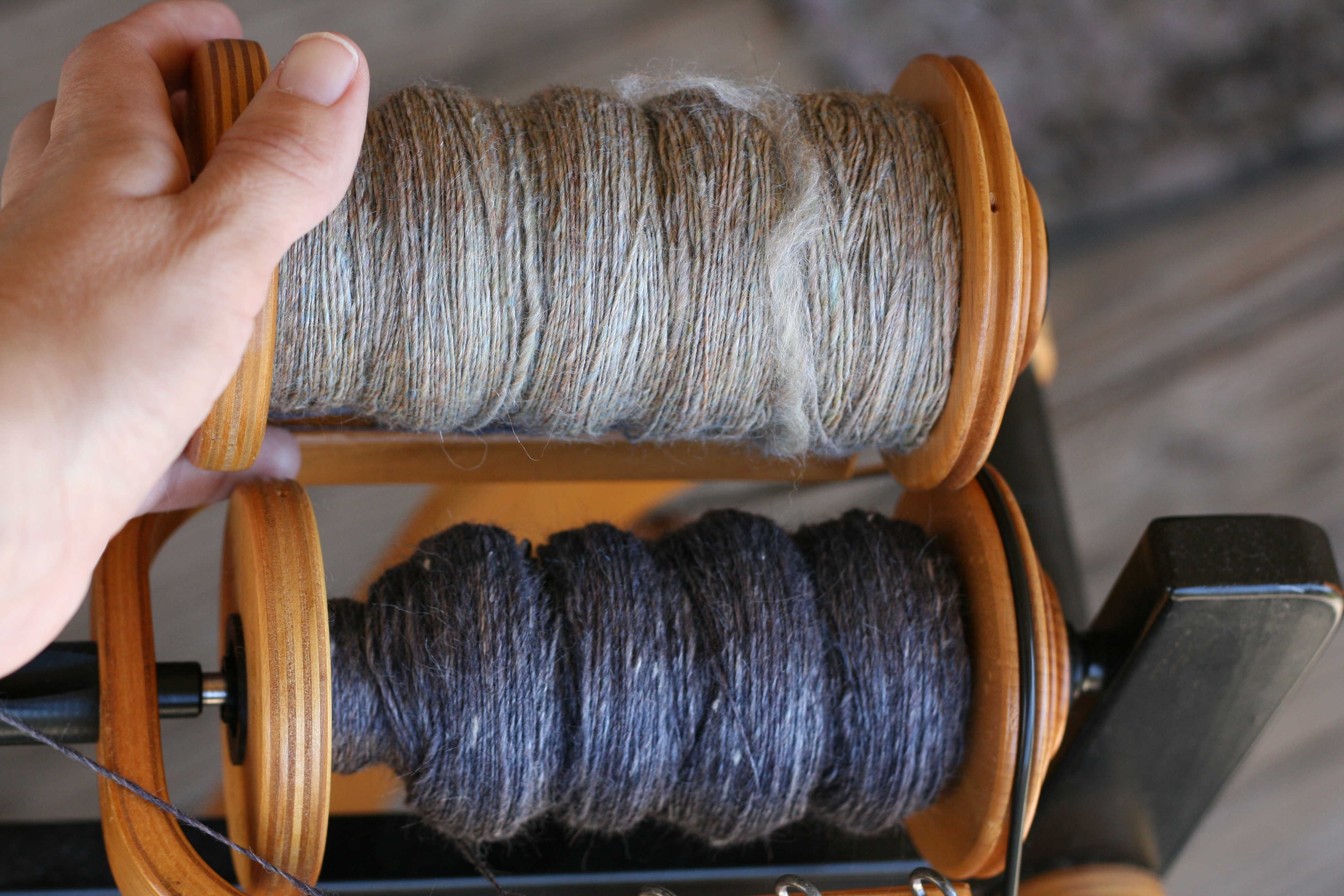 Next I’ll finish the second bobbin of pewter and ply it with the silver. I have no idea what this future-yarn will become. Maybe a Christmas gift.