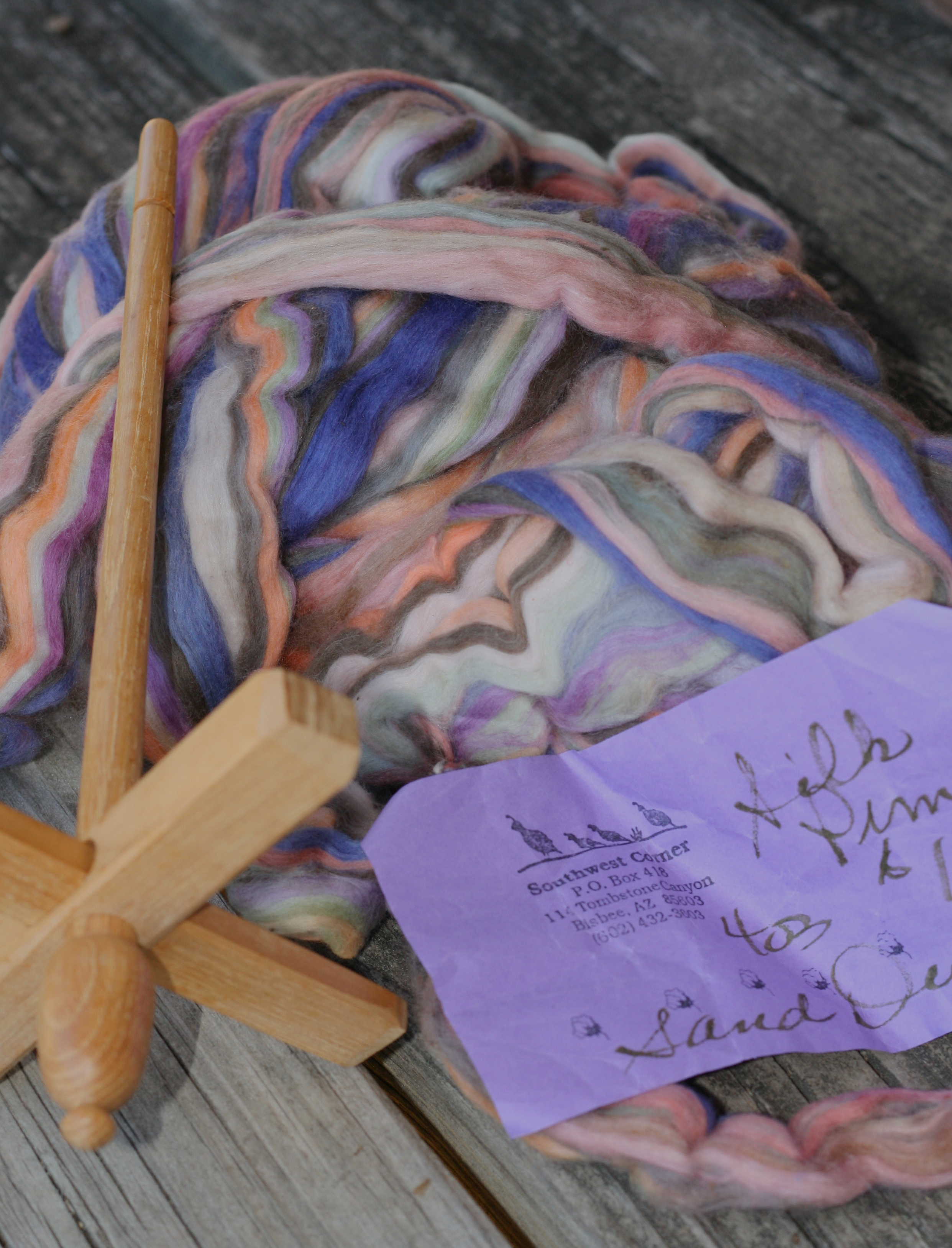 This fiber came from a friend and I believe she bought it years ago at a spinning retreat in New Mexico. She, my friend, had to give up most of her stash. The story of how I came to have so much of it is very meaningful to me and a little sad. I’ll save it for another post.