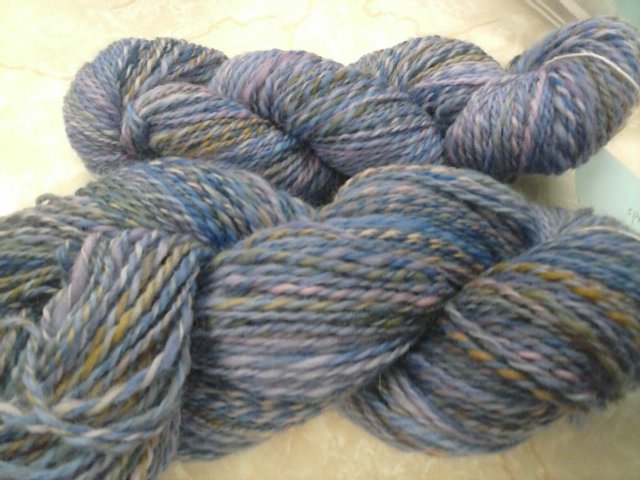 I finished plying the Sapphire and Topaz. Its alllllll done. My second skein turned out to be 238 yds for a total of 428 plied yds.