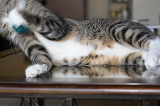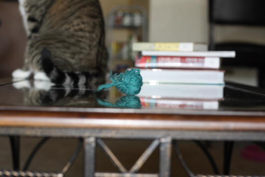 I’ve been told that Cowardly Disappearing Boy Cat hasn’t gotten enough attention on this here blog. There may be some truth in that. So I cunningly set up a little yarn bait and waited with my camera for something cute to happen.