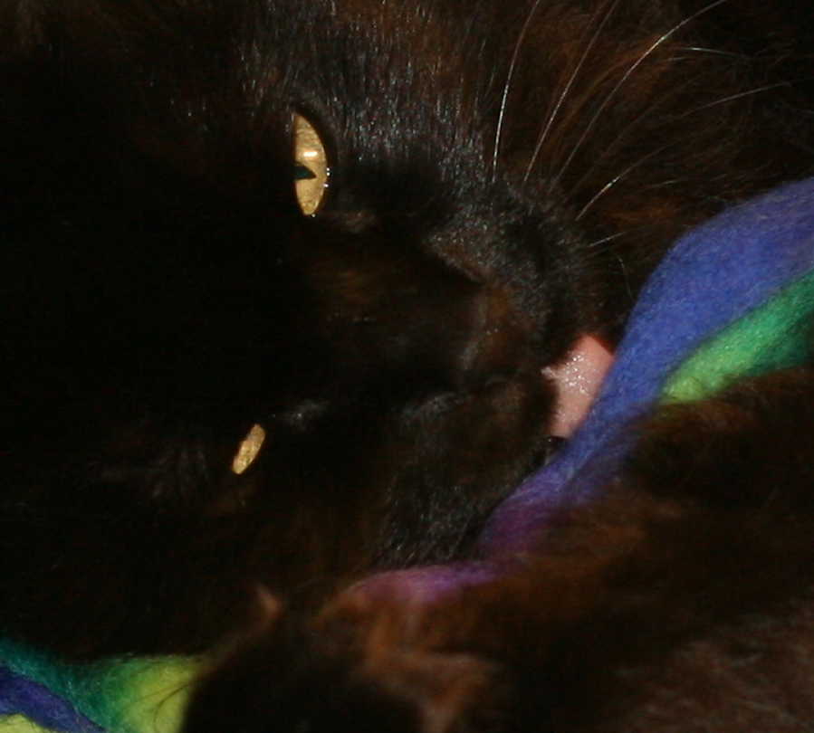 P.S. I don’t have to stage any of these kitty-to-fiber encounters. They happen all all their own. Now that I’ve realized the internet is obsessed with kitty pictures (who knew?) I’ve learned to keep my camera handy.
