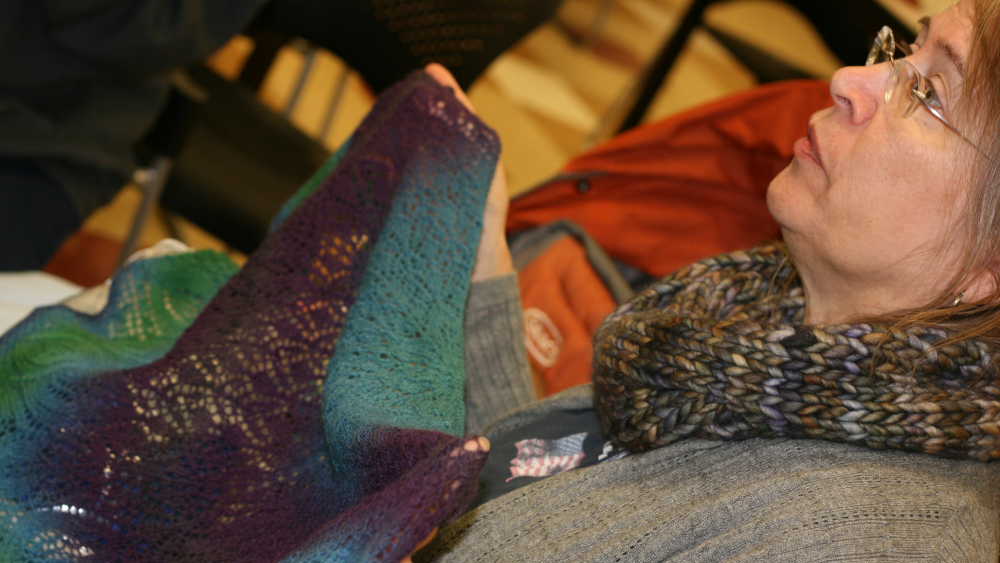 If you can’t get to the craft show, you have another chance to meet this wonderful lady because she teaches classes at The Knitting Nest. Perhaps that would be even better than winning the shawl at auction. You could learn how to make one yourself from someone who has mastered both the art of knitting and the art of being human.