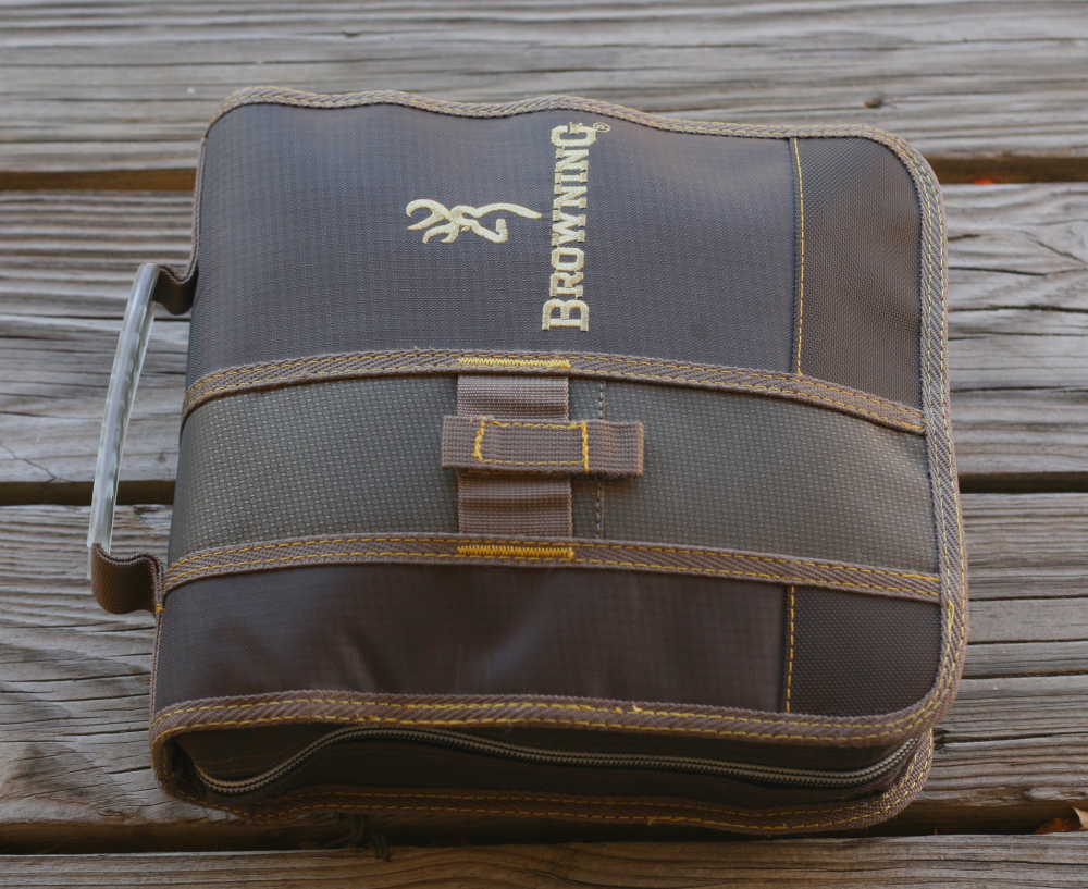No really, you need a worm binder. A friend of mine, who is a power-shopper, discovered them for me. She did all kinds of research, and product comparison, and other shopping stuff I never do, and bought me the one from Bass Pro Shops for my birthday. It’s perfect for a traveling crafter.