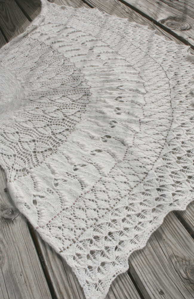 My official excuse, the one I laid off on my friends and students, was that this project just did not travel well. The yarn is fine and delicate. The charts are involved. If anyone talks to me, or even breathes hard, I’ll loose my place. All that is true but I didn’t work on this shawl much even at home. The truth is, for personal reasons, this project made me feel sad. I felt a little sad every time I picked it up.