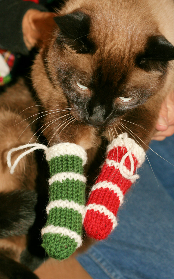 Yep, those are the Mini Christmas Stockings. I knew they would make awesome kitty socks.