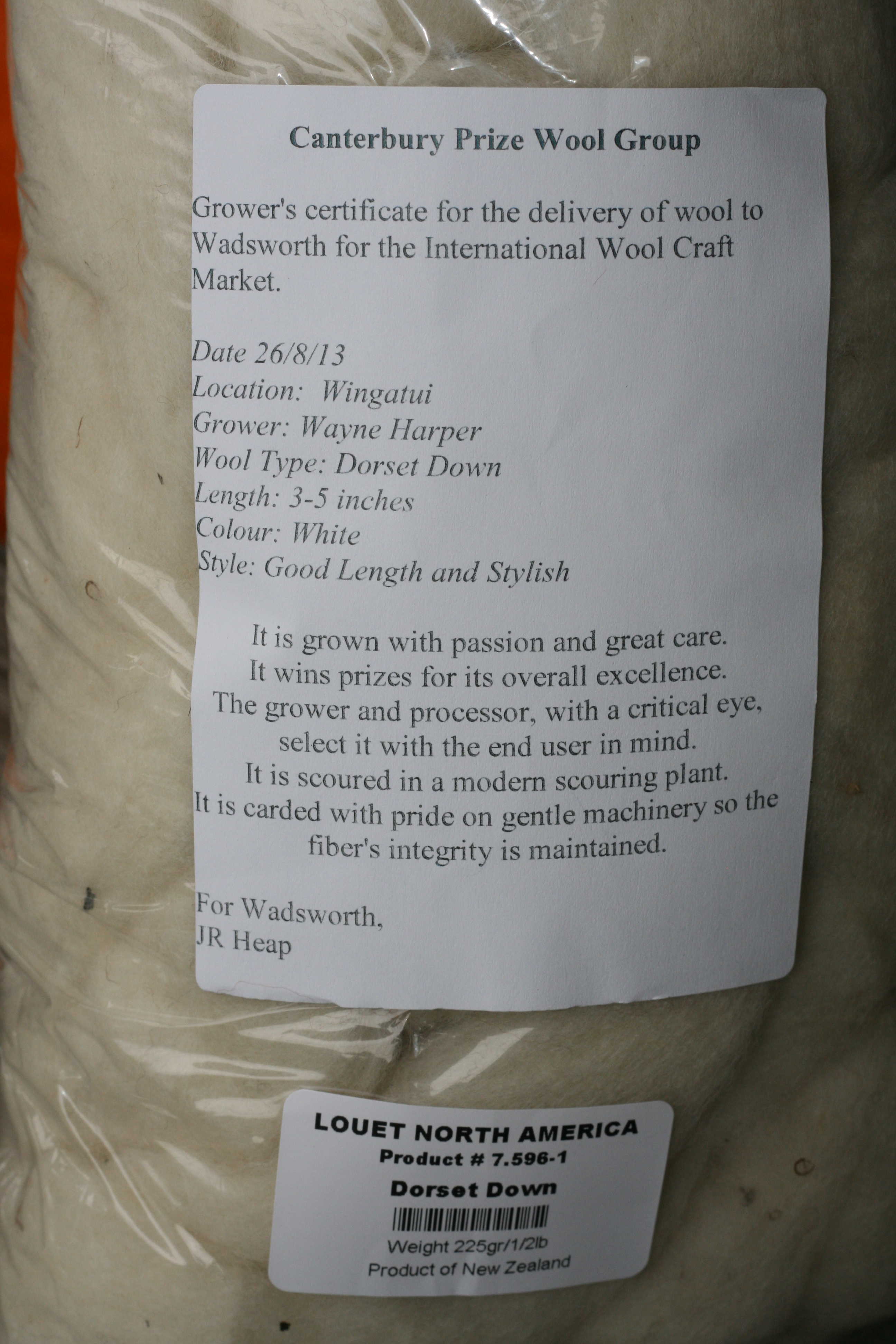 Speaking of how it was processed, Louet packages this fiber (and all their rare breed fibers) with a label informing you all about your sheep and where is came from.