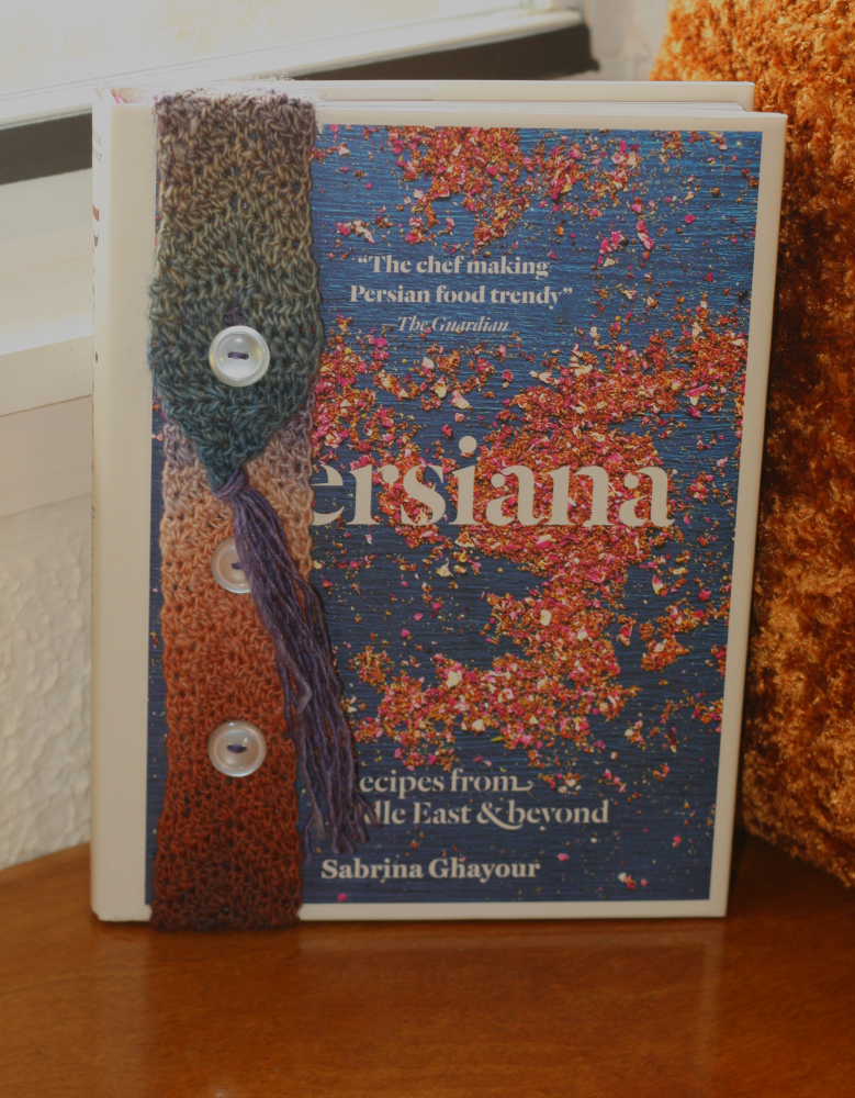 One of my last-minute ideas for Christmas gift-giving was to whip up a crochet bookmark and add it to the Persian cook book I’d bought for mom. It was one of those ideas that sounded great in my head. It would be quick, it would add a personal touch to the gift, and I would write up the pattern and post it here as an easy project to do during the holidays. Then I ran out of time and the good-idea bookmark was just one more thing adding to the Christmas crazy. When I finally got it finished, I slapped it in the stupid book, wrapped it up, and stuffed it in the gift bag. Two days later I realized I had forgotten to take a picture of the finished book mark. Sigh.