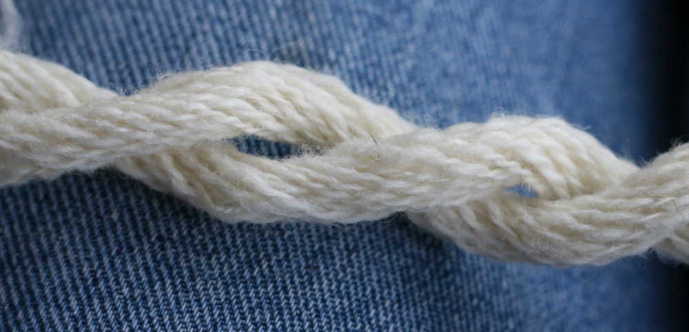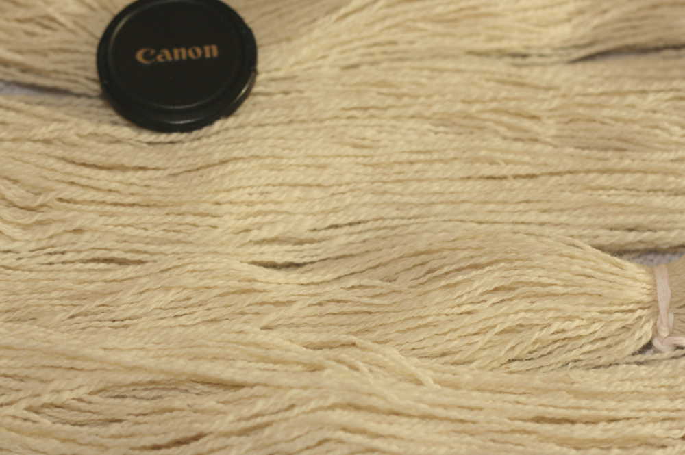 So after several (interrupted) hours at my S75 Louet wheel I had my 500 yards of sport weight yarn. The finished, plied yarn has about 11 twists per inch (4 per cm). I couldn’t tell you how many twists per inch were in the singles. The roving is light in color and the fibers are so fine that my eyes just could not make it out, lol.