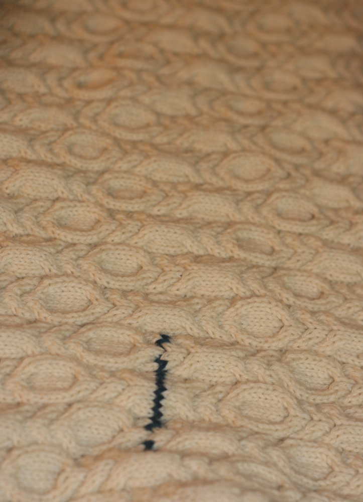 The dark line of stitches is waste yarn. It will get pulled out when I’m ready to put in the after-thought pocket.