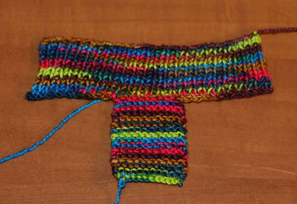P.S. The yarn shown here is Kitchen Sink by Bronotta Yarns and I wish I could point you to the place where you can purchase some but I’m not sure its available. Kitchen Sink is a special colorway. The maker of Bronotta would occasionally take all the leftover dye from one of her runs and paint one skein with every color she had on hand. Each Kitchen Sink was different. She would bring them into one of the LYS’s she sells at and I swear they would be bought and walking back out the door fifteen minutes later. I got a skein through clever bargaining and talented begging.