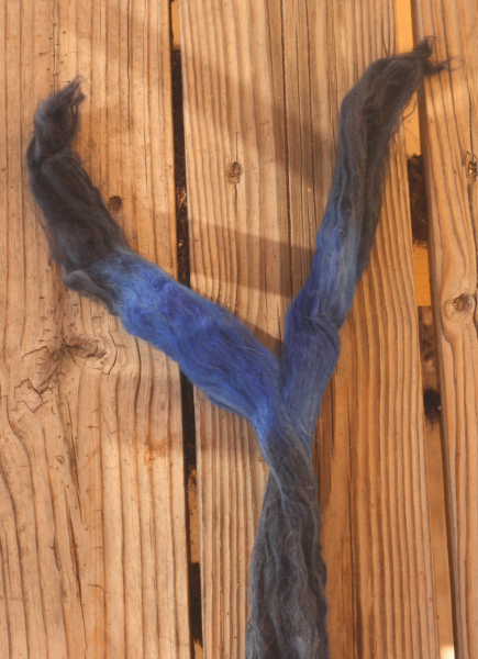 I tried to track this roving down on the net but couldn’t come up with much. I suspect it’s a discontinued product from Louet. I found it in a dusty corner at Yarnorama, an adorable little shop in Paige, Texas. Here is the label. If anyone has more information (like where one could buy some if they wanted) maybe they’ll let us know in the comments.