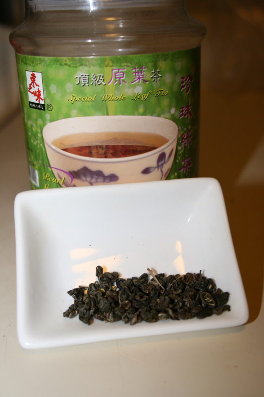 I’m not the most serious tea drinker in the world but I’m not slack about it either. I have a real kettle to boil my filtered water in. I use whole-leaf tea, not that crushed up stuff in baggies. Last year I had a pound of black tea from that came with a label I couldn’t read. Found it at the Indian grocery. This year I’m working my way through green tea that comes with a label I can’t read. Found it at the Asian grocery. One of the perks of living in Austin, we have great grocery stores.