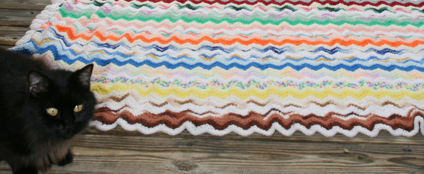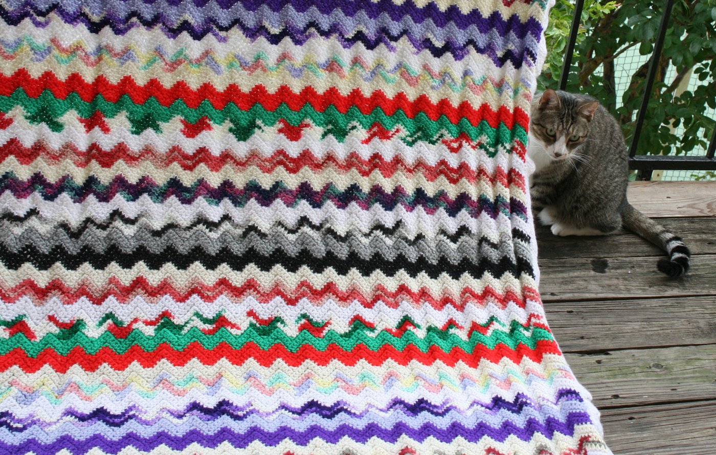 Its a king-sized masterpiece of ripple crochet in Red Heart yarn.