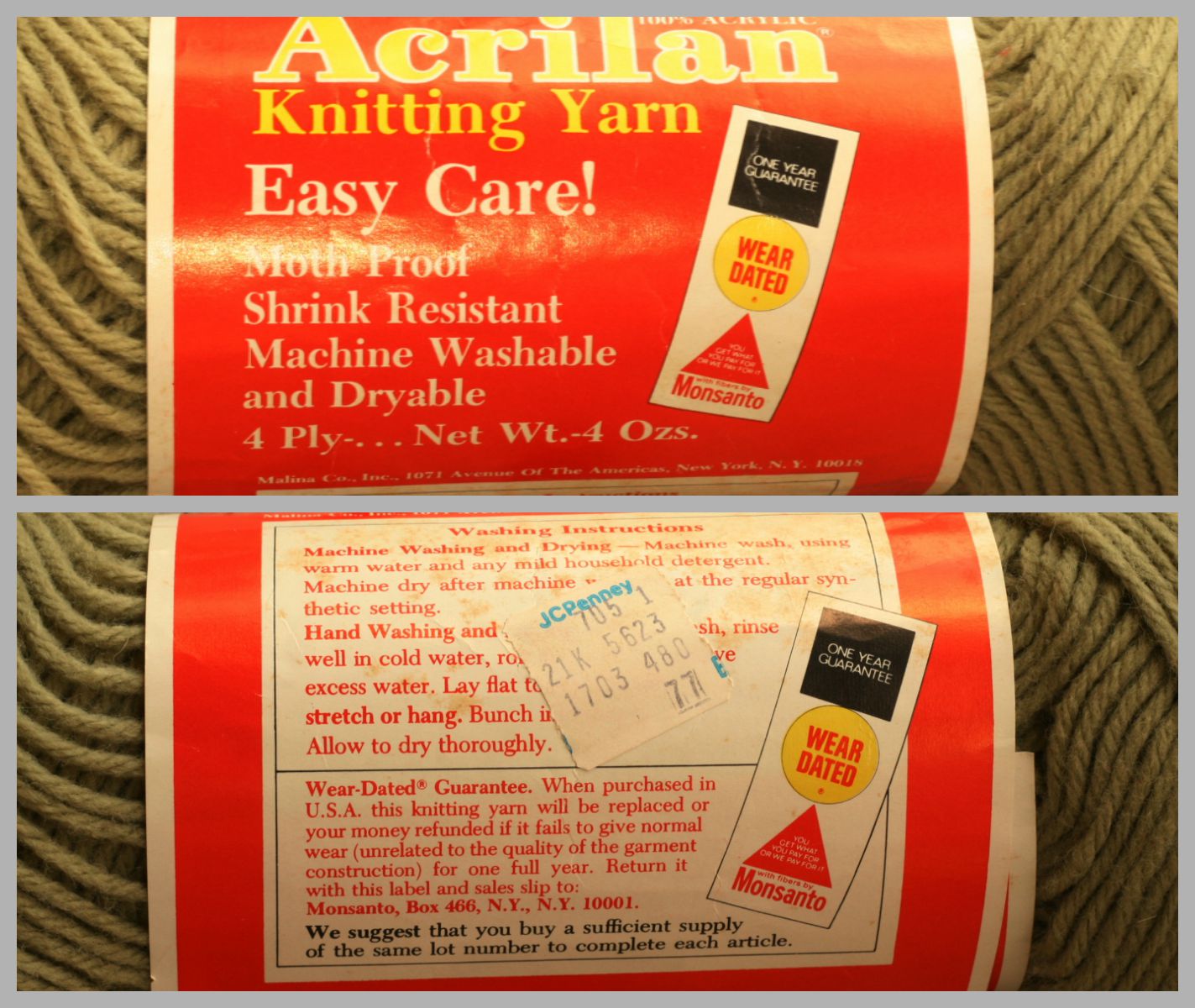 Some of these old labels remind me of things I knew but forgot. Like Acrilan! It used to be everywhere, or at least that’s the way I remember it. And I do remember when JCPenney’s sold yarn.
