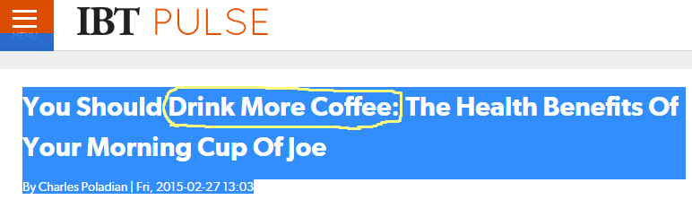 I won’t bother repeating all the benefits they list. I wouldn’t want to steal thunder from these two investigative power houses and their hard hitting stories about drinking coffee. You can click those images/links and give them a look-y if you like. They got the basics. They explain that steady coffee drinking reduces the risk of developing Parkinsons and diabetes and Alzhiemers and multiple sclerosis. But that is just the minor stuff. They completely missed the big stuff. Coffee can do so much more than just keep you healthy.