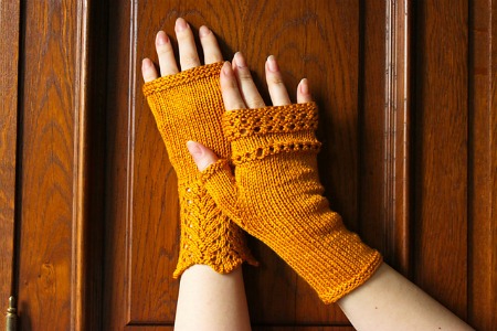 These romantic fingerless gloves are made with half a ball (130 yds) of DK weight yarn. So make two pairs! They are only available in one size and that is a mark against them. But (!!) if you need bigger mitts than you could always use thicker yarn. Plus, the pattern is free for knitters in the know. While it may list a price of $4.50, if you “purchase” this pattern before October 15, 2015, it will automatically apply a coupon code and switch to free.
