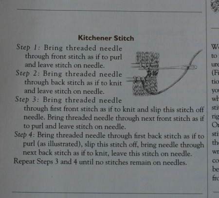 Ahh that Kitchener is as handy as it is troublesome. I remember a blog post on Yarn Harlot (love that blog) where she found a man that has tattooed the Kitchener instructions on his forearm so he always had them. that’s pretty hard core. I just have those two able printed out and pinned to my wall.