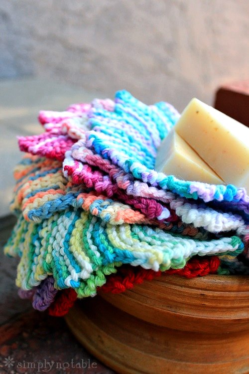 But if you are one of the traveling, face-stuffing hordes, consider using this occasion to make an Almost Lost Washcloth and/or its crochet copy aka Circle Point Washcloth. Any washcloth makes a great travel project. Its small. It needs just one ball. These two particular washcloths are easy enough that after you make one or two points, you’l have the pattern memorized and won’t need to carry it along with you. Finally they are just interesting enough to keep your attention.