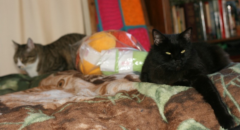 The Feline Overlord and her sidekick Cowardly Boy Cat have adjusted to their holiday lodgings. They seem to have settled into a routine of sleeping all day and rampaging all night. There are two other cats in this house you see and nights are for knocking things over and crashing into holiday decorations and breaking into the containers of dry cat food to eat three days worth of food. I haven’t been doing much sleeping but that’s okay because… I have ten pounds of coffee. .