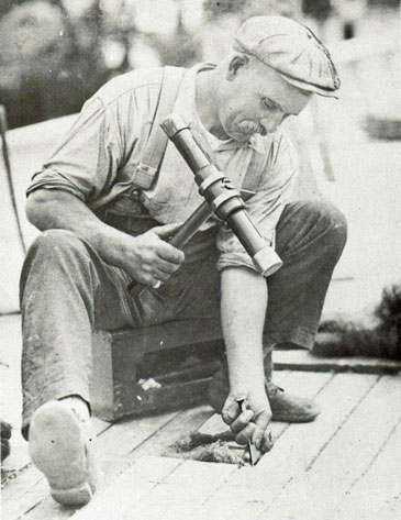 Oakum pickers developed thick black scars on their hands from this work. They also suffered tendonitis, bursitis, nerve damage, and all those other conditions that result from repetitive stress motions.