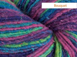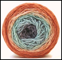 Casablanca is a nice yarn. Its a worsted weight blend of wool, silk and mohair and its irregular enough to look like handspun. You can’t tell by the way they have it skeined (and I think that hurts its sales) but its a long color way yarn. I used it to make one of my Meshed hats.