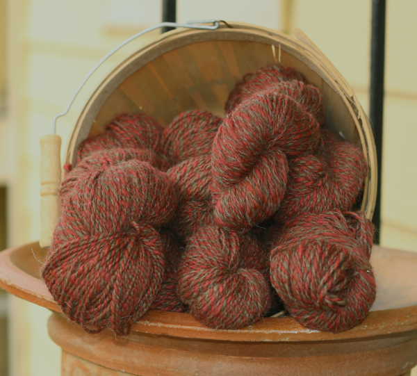 I had a plan to make this particular project ever since I finished handspinning the yarn. Its the mostly-alpaca brown’n maroon yarn I made for one Spinzilla event. I called it Cherries and Chocolate.