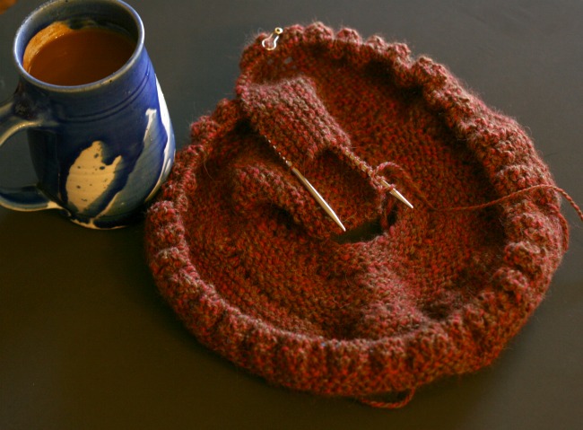 Its a special time in the life of a knitting project. When you know how its going to look, about how long its going to take and you haven’t gotten sick and tired of it yet. I call it mid-life of a big knit project. I think that is when you and the project are best friends.