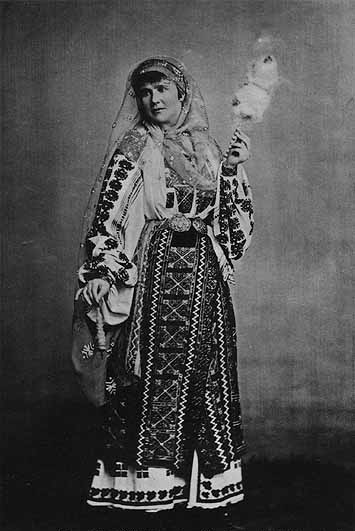 She wasn’t the only one. Check out Queen Elisabeth of Romania, who wasn’t Romania at all but German. She decked herself out in traditional Romanian clothing and picked up her spindle and her distaff to have this very important picture taken.