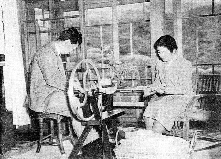 But maybe not. Maybe it was humiliating. Spinning really was a woman’s thing. I could only find one picture of a famous man spinning (for fun) and maybe it is the exception that proves the rule. In a true reversal of gender roles, here is Princess Setsuko carding wool and Prince Chichibu spinning it.