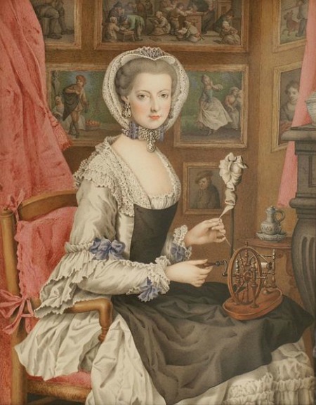 Go back a hundred years or so and you’ll find Archduchess Marie Christina of Austria at her mini-spinning wheel, and decked out in quite the outfit. Perhaps I should mention that Marie Christine was sister to Marie Antoinette. I guess that whole family believed in spend-spend-spend that tax-payer money.