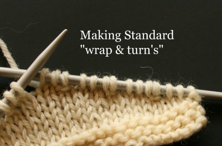 After the standard wrap and turn is the modified wrap & turn. The wrap happens the same way as before but the picking up is different. Its…. involved and hard to explain in words. That’s why classes are video these days! (lol). But the modification is to get the wrap in position so that your stitches are not twisted. Its makes a big difference. My modified wraps and turns are much nice, much cleaner.