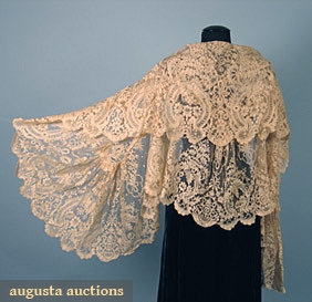 Up through the 1920’s shawls and stoles and wraps were worn by ladies in English speaking countries of all economic levels. Wealthy women wore creations of handmade lace and silken embroidery. Working women wore cheaper, machine made imitations. But all women had a shawl or two to dress up and cover up.