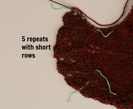 Then I started my short-row-version repeats. Here is how it looked after 2 of those.