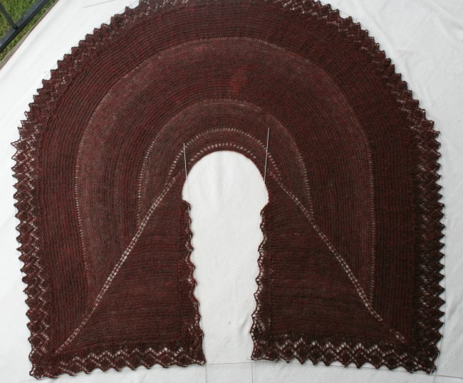 Stunning! you really outdid yourself on this one Jenn. Your Mother will love it. It blocked out so much bigger than I expected too. Now I want some blocking wires for myself. I have my fingers crossed for you on the subject of rain. Alpaca takes soooo long to dry.