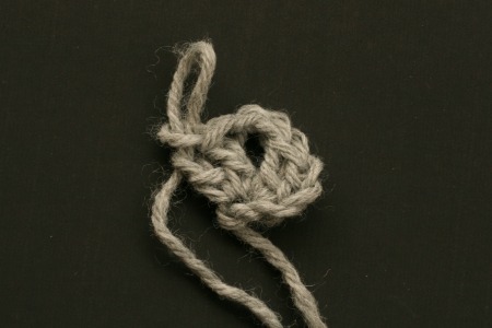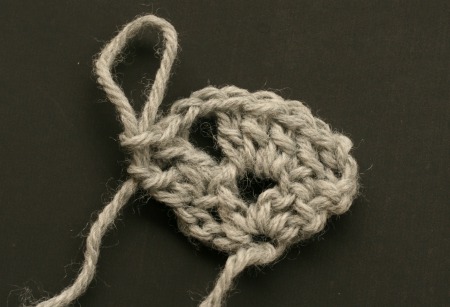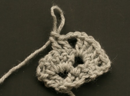 Row 1: Ch 4, in 4th ch from hook work the following: dc, ch 2, dc.