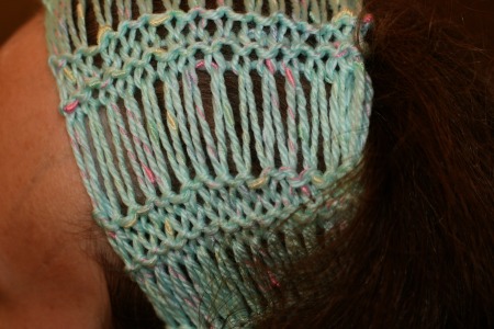Now you have a highly effective hair-frizz control device should you need one. And you’re an expert on dropping stitches… on purpose. This is a technique you can use in any plain garter stitch or plain stockinette stitch pattern to jazz things up. I think its excellent for showing off a variegated yarn.