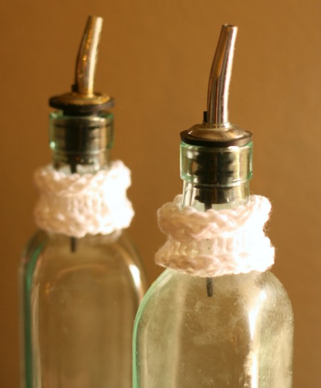 I wanted some of those drip catchers for my vinegar and oil drizzly bottles. (Those bottles probably have a real name but I don’t know it. I just call them my drizzly bottles and I feel like a total pro in the kitchen when I’m drizzling with them.) These drip catchers are dead simple to make.