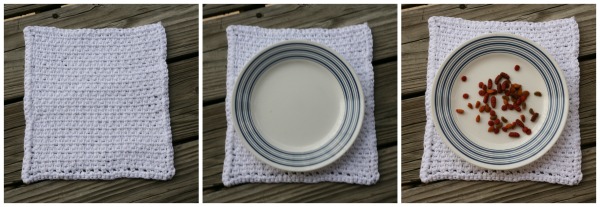 (I just KNOW you are wondering why Cowardly Boy Cat doesn’t get a crocheted food plate mat. Okay. I’ll tell you. Its not because I don’t love him. Cowardly Boy cat is the messiest eater in feline history. He’s really excels at sleeping and eating and when he eats, he power eats. There is hissing, there is growling, and there is a lot of shaking his head and flinging food around. He murders every plate of cat food he gets. So he eats off a Rubbermaid Mud Boot and Utility Tray. That thing is can totally stand up to its weekly trip to the dishwasher.)