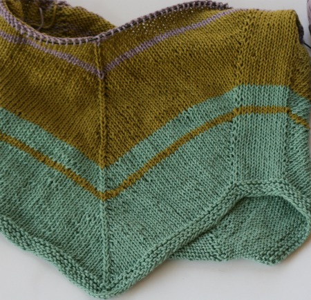 Thanks (for the knitting support). I’m liking the way the three colors are coming together.