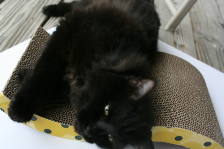 I am not going back to Wal-Mart to buy Boy Cat his own cat scratcher. No. I’m already going to have to clean up a mess of cardboard bits every single day. I don’t need to double my house cleaning duties.