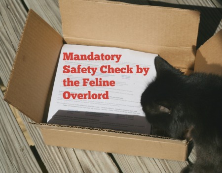 I trust the people from Knit Picks. The Feline Overlord does not. Thus there a mandatory safety inspection open receipt of new stuff.